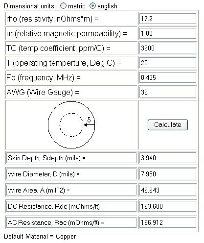 | @ 12AX7 See the detailed explanation in the opening post a bit down from the top where it says Joules needed for vaporization of a 2 cm 28 AWG wire on how to determine the joules needed to blow the volume of metal comprising a bridgewire. You can calculate the weight with this _ http://circuitcalculator.com/wordpress/2007/09/20/wire-param... Knowing this you can now proceed to the next phase , of determining the capacitance and voltage to provide the needed energy You stated ~ 4 Joules = {( 20 uf ) X ( 630 volts ) X ( 630 volts )} / 2 10 Joules at 1000 volts is not realistic , if the rating is substantially exceeded the caps will fail , count on it. Of course you can get around this by placing 2 caps in series to withstand 2 X 630 volts. The energy will remain ~ 4 joules for the reduced equivalent capacitance of 5 uf Discharge time will not change , although the actual output certainly will be less. Read my third post above for why that is. The ESR ( Equivalent Series Resistance ) of the capacitor(s) determines what the discharge time will be. By your numbers the ' RC ' time constant has to be (.003 ohm ) X (.00002 farad ) = 60 nanoseconds , where 2.3 microseconds comes from I don't see. If you don't know or have a ' reasonable ' idea of what the ESR is ( from the manufacturer perhaps ) any ' surmise ' of a discharge time is just that, surmise. Voltage is irrelevant to anything but the determination of what the energy of the capacitance is. Higher voltage will only squash more of the energy into the leading part of the discharge profile. For the established ESR the pulse width remains unchanged regardless of any other changes. A higher energy pulse may be inferred from the truncated leading portion from what follows. Extremely short ( a few millionths of a second ) discharge times unless there is some other need besides just exploding a wire, is wholly uncalled for and unnecessary. A very big problem which rears up with short discharge times is the skin effect which overshadows any stray inductance by at least another 2 orders of magnitude. ( 100 times or greater ) You cite 2.3 usec ( I'll humor you for the moment ) frequency is the reciprocal of time , f = 1/ t , then the 2.3 millionths of a second translates to a frequency of 435 kHz. You will need at the very least a 32 AWG wire or much preferably smaller to lessen attenuation of the pulse. See this chart - http://www.powerstream.com/Wire_Size.htm posted just above this - Joules needed for vaporization of a 2 cm 28 AWG wire or calculate it here yourself _ http://www.mantaro.com/resources/impedance_calculator.htm#sk... also attached below _ True all of this is classic EBW technology and practice. The prevailing school of thought is a minute EBW subjected to a very brief pulse, which serves as a choke point to the pulse, thereby condensing the energy. The problems with this is that it requires very careful engineering with no ' wiggle ' room. If something is off by just a bit due to unforeseen parasitic losses , either because of lowered voltage reducing the needed energy, or stray inductance sapping it, then there is no bang. In my view and the point of starting this thread is that everything is wrong with this established approach and that it may work at all is a wonder. . | |||||||||
